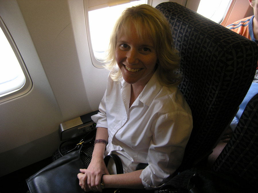 Joanne gets excited for Spain as our flight nears conclusion.