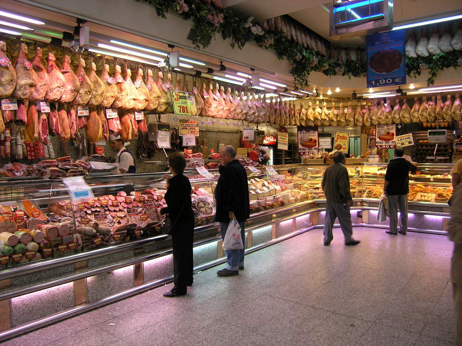 "Jamon" (ham, especially the high-end "Iberico" variety) is abundant in Madrid. Vegetables are not so common.